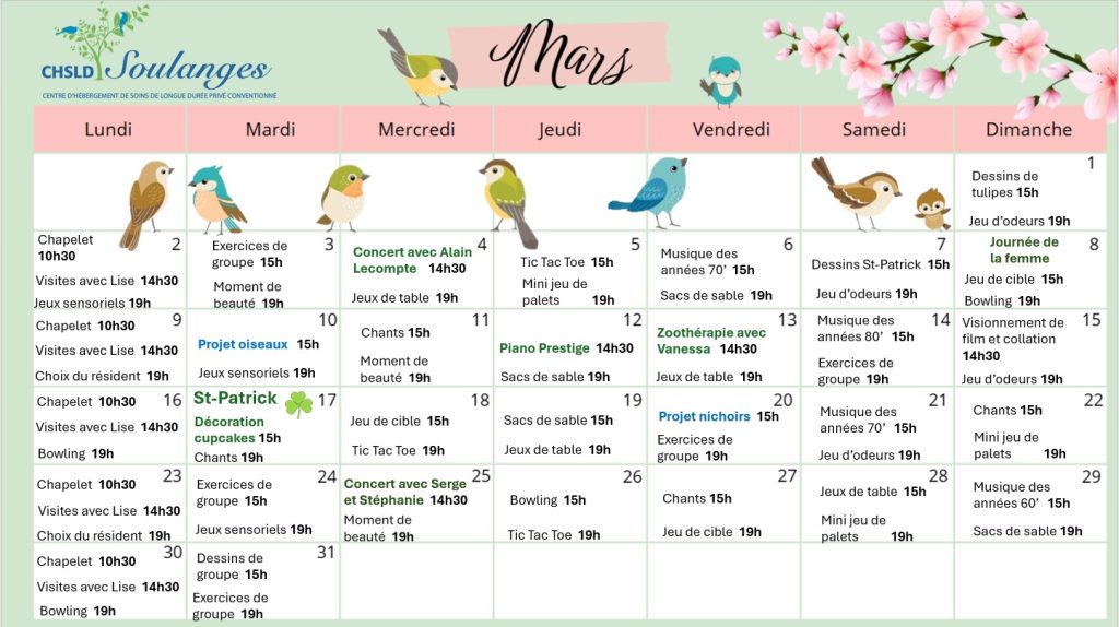 CALENDRIER D'ACTIVITÉS