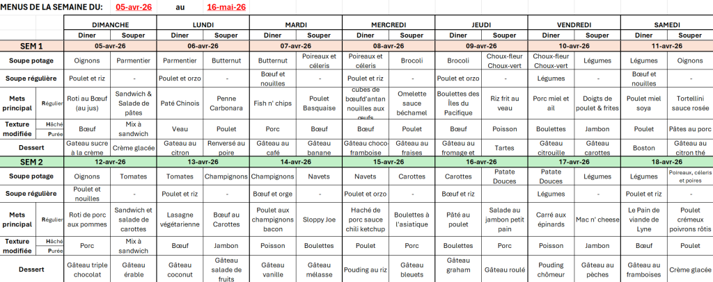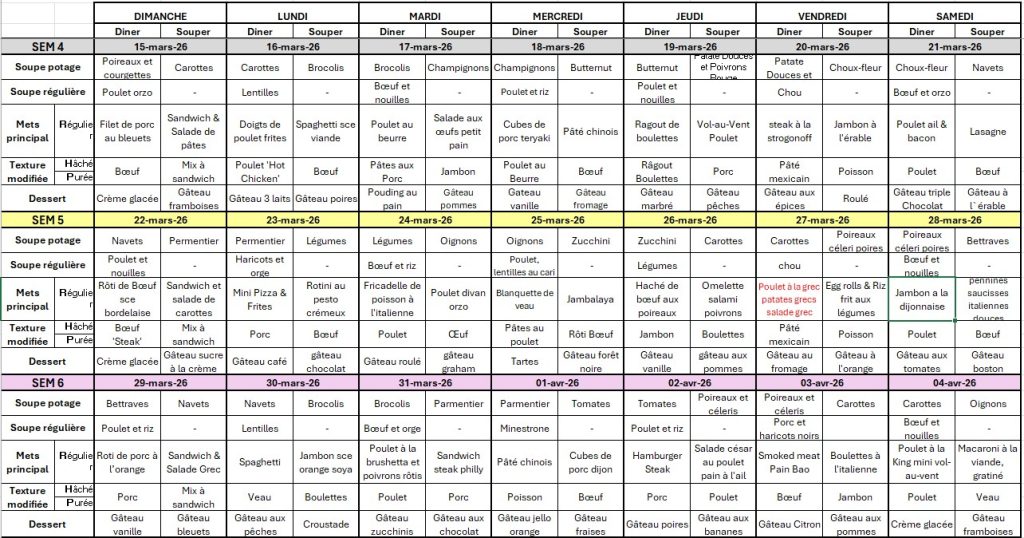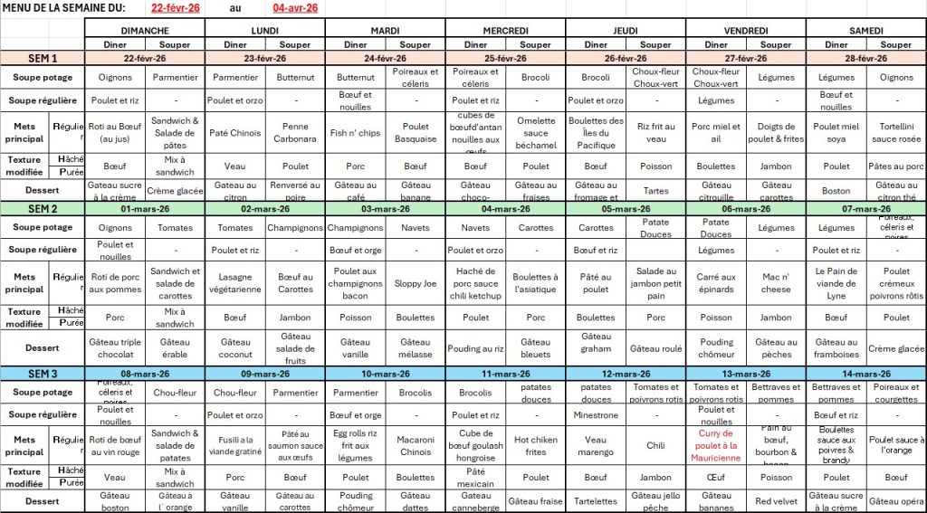 MENUS - DU 22 FÉVRIER AU 4 AVRIL 2026